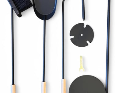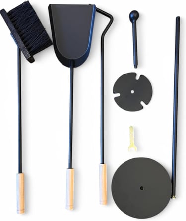 Log-Barn 4 Piece Arc Fire Companion Set, Cast Iron Modern Fireside Fireplace Tools, Black with Wooden Handles