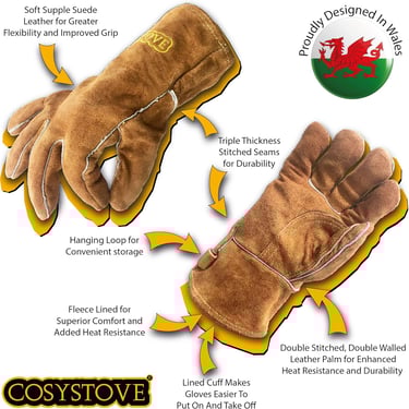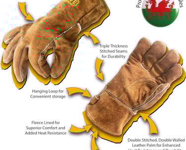 Genuine Full Leather Heavy Duty Heat Resistant Gloves for Woodburner, Multi-Fuel Stoves Heavy Duty Safety Gauntlet Also for BBQs Pizza Ovens